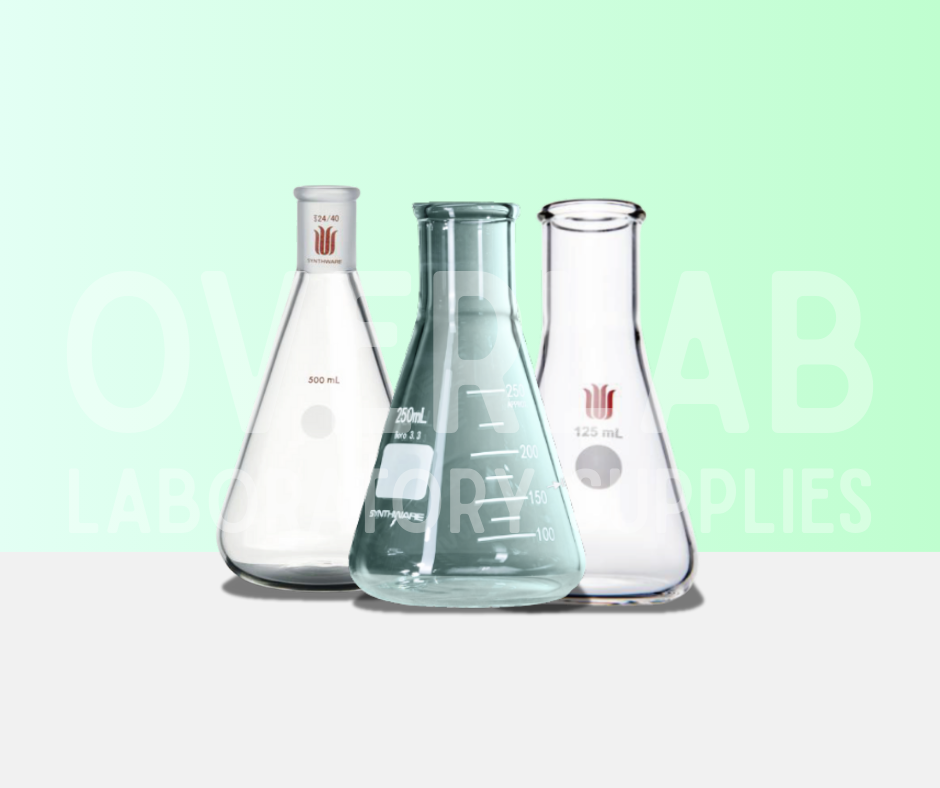 An essential piece of laboratory glassware, the conical flask (also known as Erlenmeyer flask) features a flat base, sloping sides and a narrow neck, making it well-suited for mixing, heating, titration and temporary storage of liquids. Its conical shape enables efficient swirling with minimal risk of spillage, while the narrow neck helps reduce evaporation and contamination. Conical flasks are available with standard ground joints or stoppers for secure closure during storage, sample handling or controlled reactions, as well as non-stoppered versions designed for open operations such as titration and routine mixing. Manufactured from heat-resistant borosilicate 3.3 glass, they provide excellent chemical and thermal durability, making them suitable for use in research, commercial, quality and teaching laboratories.